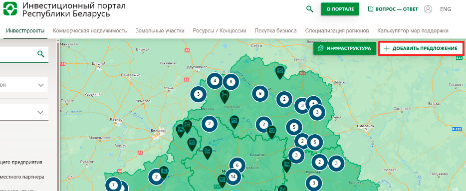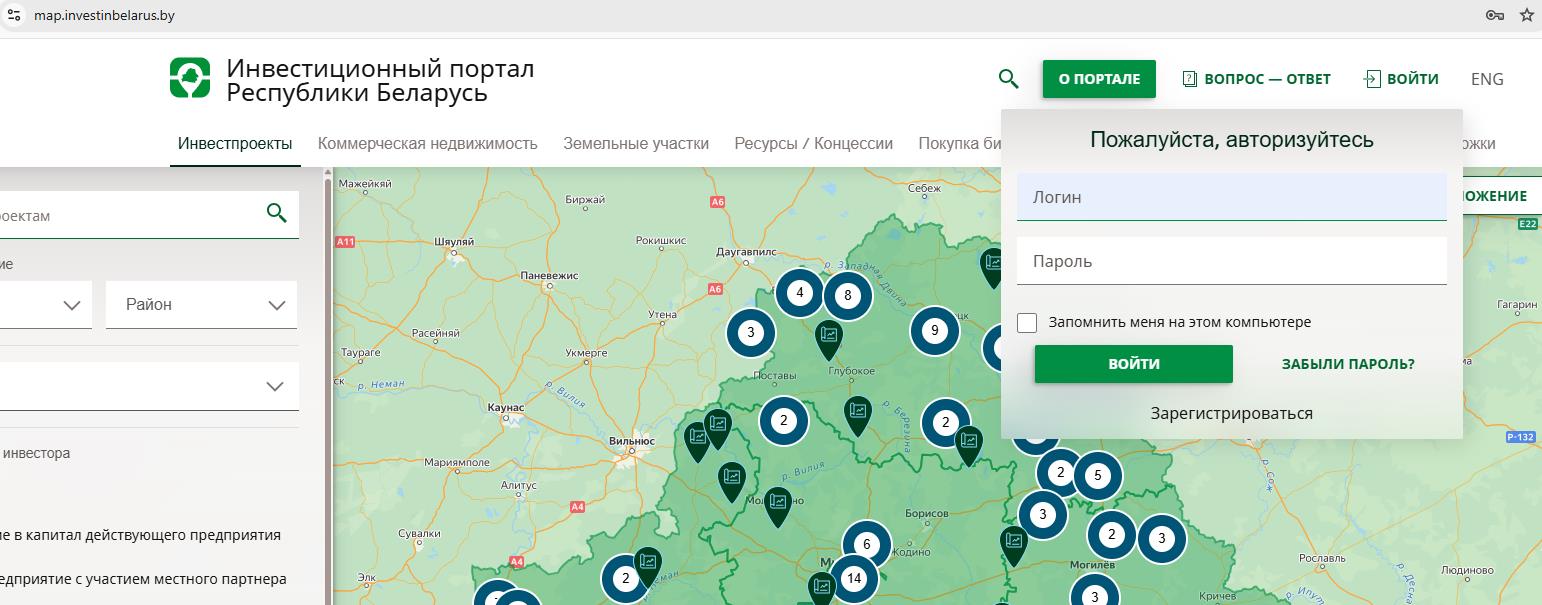 - Перейдите на сайт Инвестпортала по ссылке https://map.investinbelarus.by/