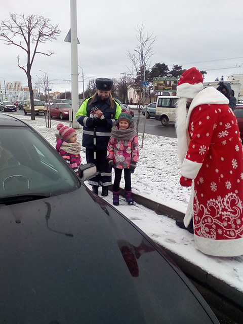 На улице Орловской сотрудники ГАИ напоминали водителям о соблюдении ПДД и безопасности на дороге, поздравляли с наступающими праздниками и призывали не нарушать правила в следующем году.