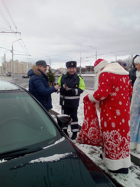 Сотрудники Госавтоинспекции Центрального района совместно с радио «Мир» и питомником декоративных растений «Красный клен» продолжили акцию «Безопасный новый год».
