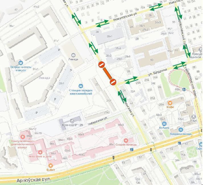 Объезд данного участка возможен по ул. Щедрина, ул. Новаторской, Старовиленскому тракту.