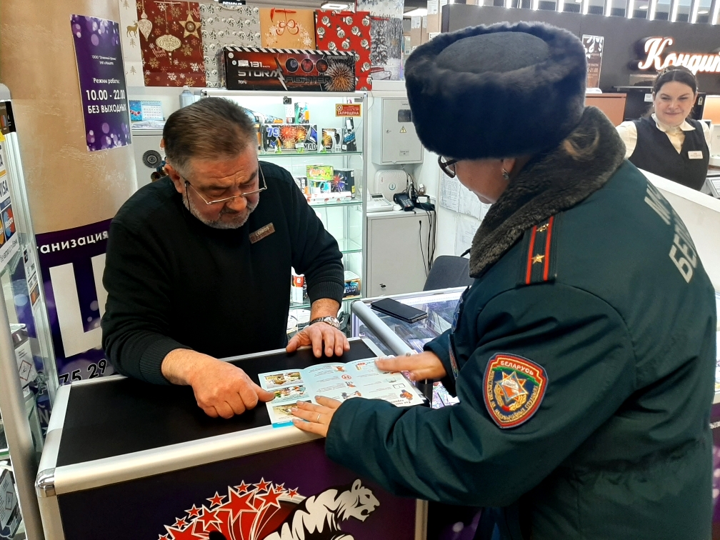 В рамках республиканской акции «Безопасный Новый год!» работники Центрального районного отдела по чрезвычайным ситуациям посетили места продаж пиротехнических изделий.