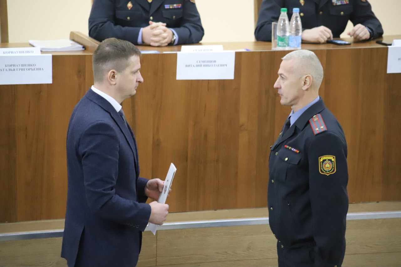 Сегодня в актовом зале Центрального РУВД столицы с участием первого заместителя начальника ГУВД Мингорисполкома – начальника милиции общественной безопасности Подвойского И.Л., первого заместителя главы администрации Центрального района Передни В.А., а также прокурора района Кондаревича О.В. и начальника районного отдела Следственного комитета Корнаушенко Н.Р., проанализирована деятельность Центрального РУВД в 2022 году и определены основные задачи на предстоящий период.