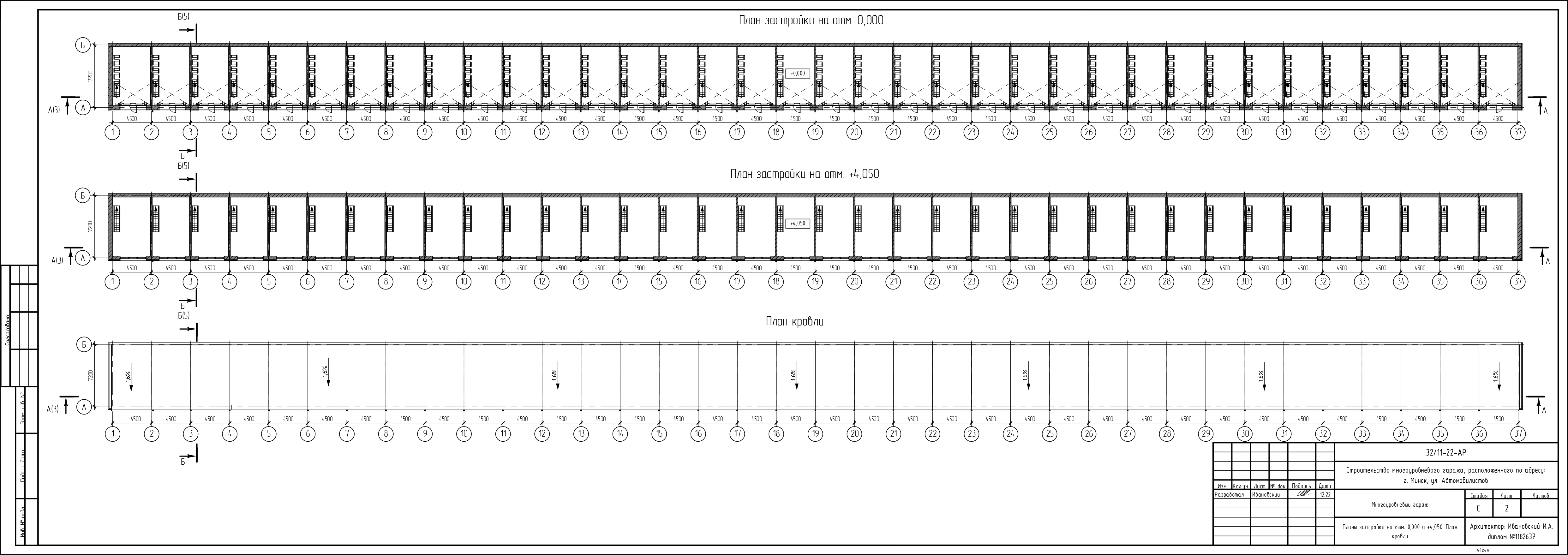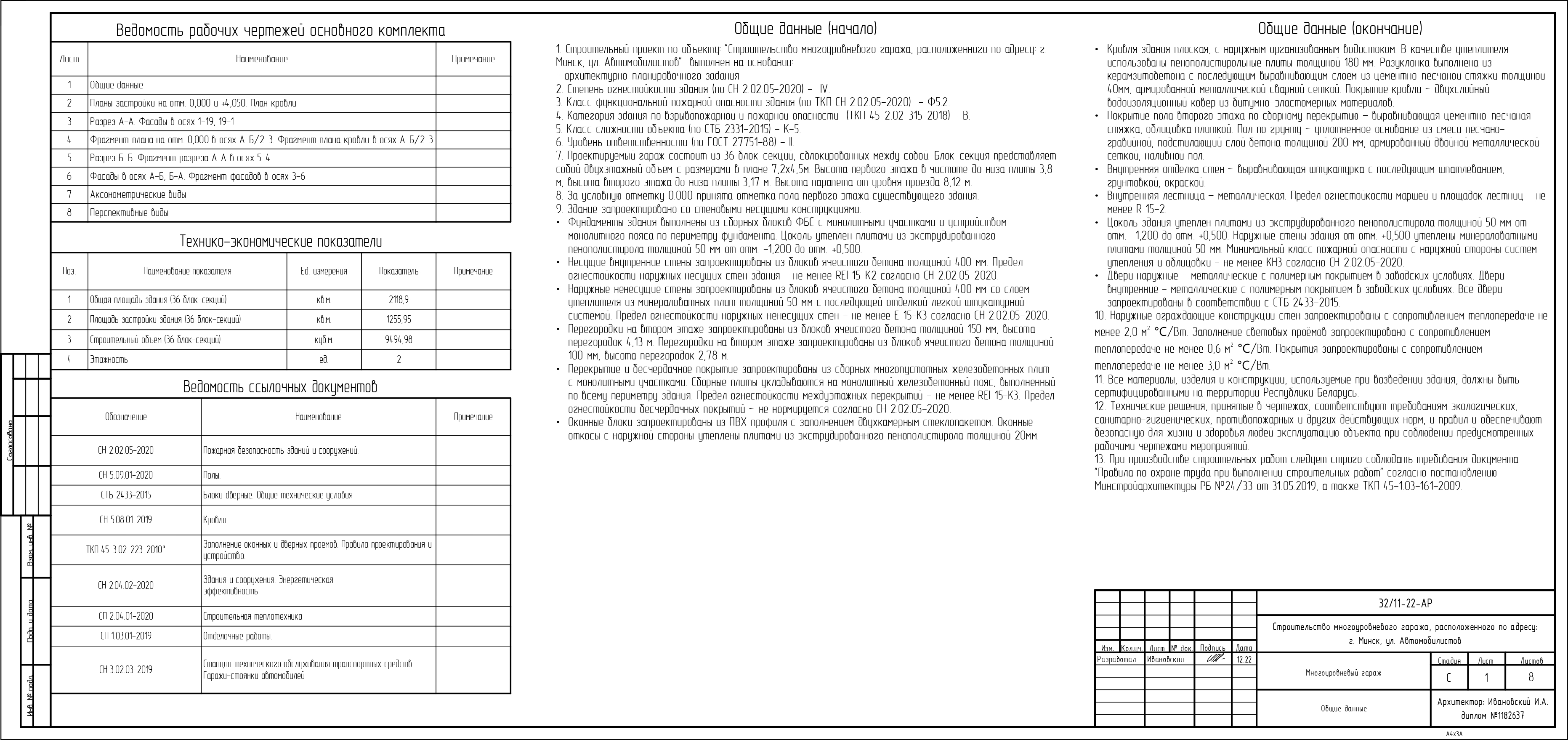 Общие данные по объекту: "Строительство многоуровневого гаража, расположенного по адресу: г. Минск, ул. Автомобилистов", состоящего из 36 блок-секций с габаритными размерами в осях 7,2х4,5 метра.
