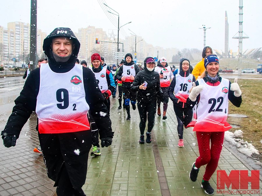 Спортсмены преодолели дистанцию в 3,5 км. Финишная точка забега — у площади Победы, где минчане также возложили цветы к памятнику.