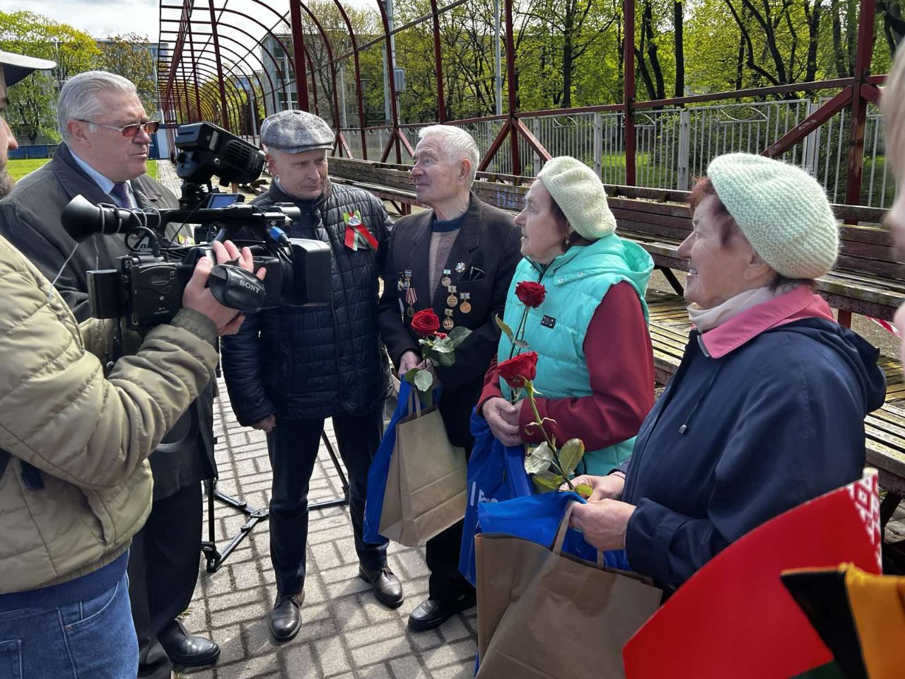 В честь ветеранов состоялся плац-концерт в исполнении военного оркестра Минского суворовского училища , который завершился молодежной акцией БРСМ "Спасибо за Победу!