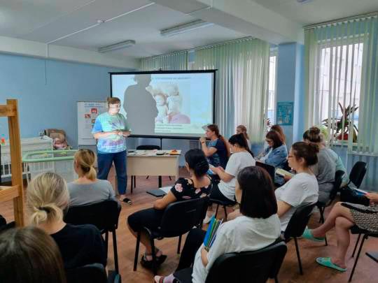 Обучающий семинар для будущих матерей "В семье рождается счастье" провели сотрудники МИМОДЗ Толстуха Е.Ч. и Манкевич Н.И. сегодня в РНПЦ «Мать и дитя» по вопросам семейных ценностей, сохранения репродуктивного здоровья, психологической поддержки, ухода за ребёнком, поддержки грудного вскармливания и раннего развития детей.