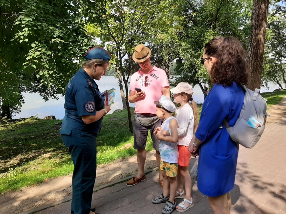В ходе мероприятия инспектора напоминали отдыхающим о правилах поведения на водоемах, о том, что купание разрешено только в специально оборудованных местах, особенно бдительным необходимо быть родителям и не оставлять детей у воды без присмотра. С детьми вспоминали телефоны экстренных служб, алгоритм действий в случае возникновения чрезвычайной ситуации.