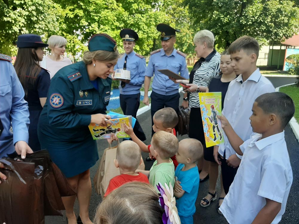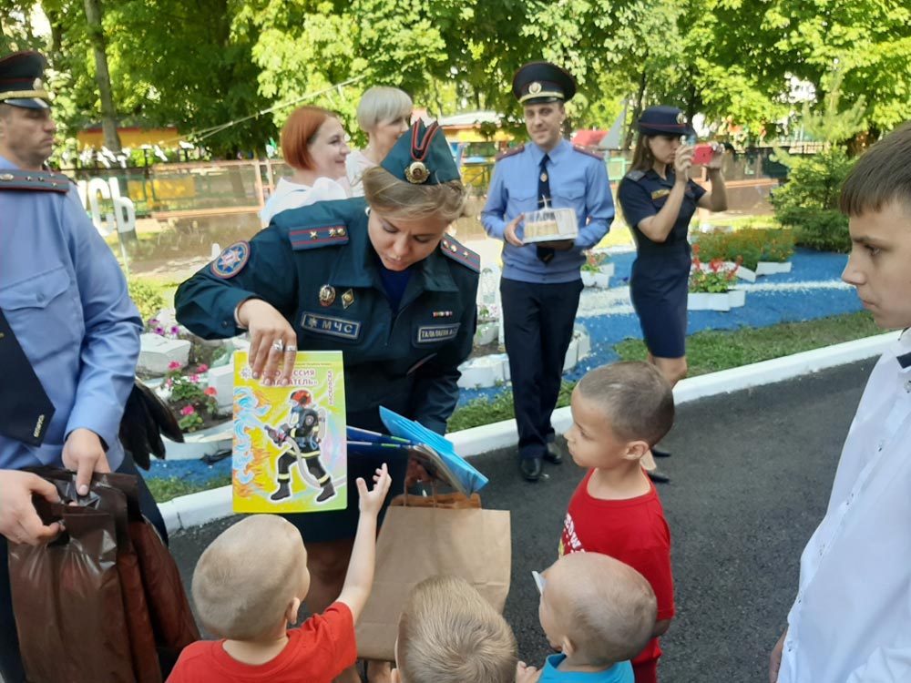 Традиционно работники силовых структур организуют праздничное мероприятие для ребят, которые временно остались без попечения родителей. Возраст воспитанников – от 3 до 18 лет. Во дворе Центра была организована выставка спецсредств и вооружения, которое используют в своей деятельности спасатели и милиция. Все желающие могли примерить форму спасателей-пожарных, обмундирование и бронежилеты работников МВД. Ребятам предложили интересную и полезную игру, в которой они могли проверить свои знания в области безопасности жизнедеятельности. На старте каждый получил свой «Дневниках безопасности», затем, проходя разные испытания и задания, приготовленные гостями, ребята собирали отметки. Те, девчонки и мальчишки, кто получал за свои знания, умения и навыки отметку «отлично», заработали сладости и памятные подарки.