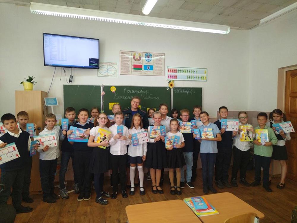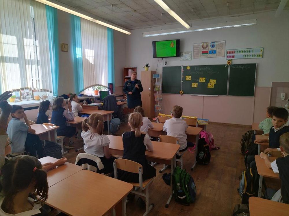 Урок бяспекі прайшоў з вучнямі чацвёртага класа па тэме: «Небяспечныя сітуацыі дома». Аб правілах паводзін пры ўзнікненні пажару і іншых надзвычайных сітуацый паразмаўляла з вучнямі інспектар сектара прапаганды і ўзаемадзеяння з грамадскасцю Ганна Талалаева.