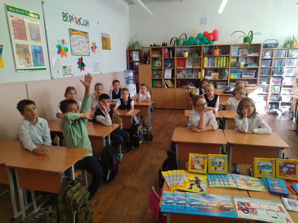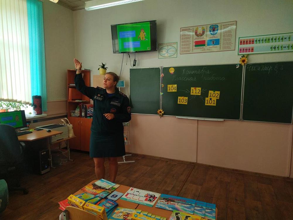 Вучням былі прадэманстраваны малюнкі з выявамі розных надзвычайных сітуацый, з дапамогай якіх яны змаглі паразважаць і адказаць на пытанні, што неабходна рабіць ў той ці іншай сітуацыі. Школьнікі навучыліся хутка паведамляць аб пажары, патэлефанаваўшы па нумары 101 або 112. Таксама вучням былі прадэманстраваны мультфільмы «Спецатрад 112» і «Чароўная кніга МНС».