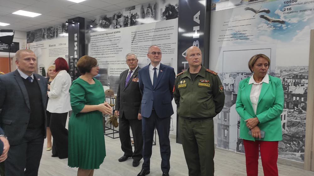 Гости и учащиеся ознакомились с экспозициями "Горжусь гимназией своей", " Поколение мира помнит", "Они прошли дорогами Афганистана", "Беларусь современная".