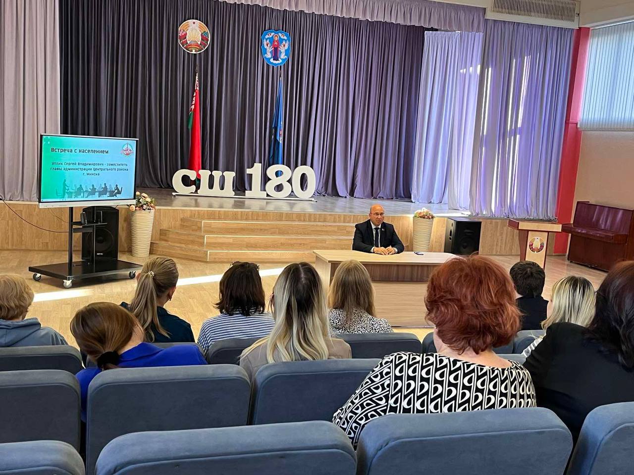 На базе ГУО "Гимназия №3 г.Минска" и ГУО "Средняя школа №180 г.Минска" состоялись встречи заместителя главы администрации Центрального района г.Минска Утлика Сергея Владимировича и управляющего делами администрации Центрального района г.Минска Хмельницкой Наталии Ивановны с населением.
