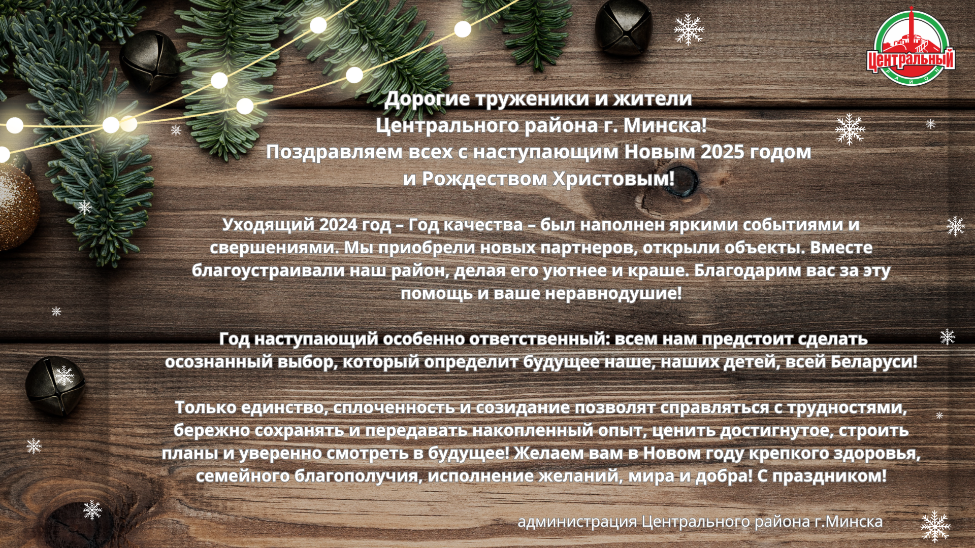 Дорогие труженики и жители Центрального района г.Минска! Поздравляем всех с наступающим Новым 2025 годом и Рождеством Христовым! Поделиться материалом: Facebook Twitter ВКонтакте Одноклассники WhatsApp Viber Распечатать страницу: