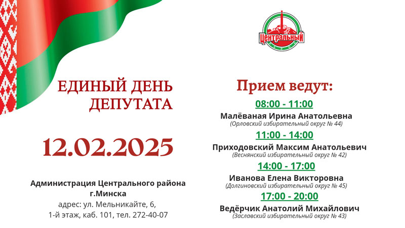 Единый день депутата 12 февраля 2025 года Поделиться материалом: Facebook Twitter ВКонтакте Одноклассники WhatsApp Viber Распечатать страницу: