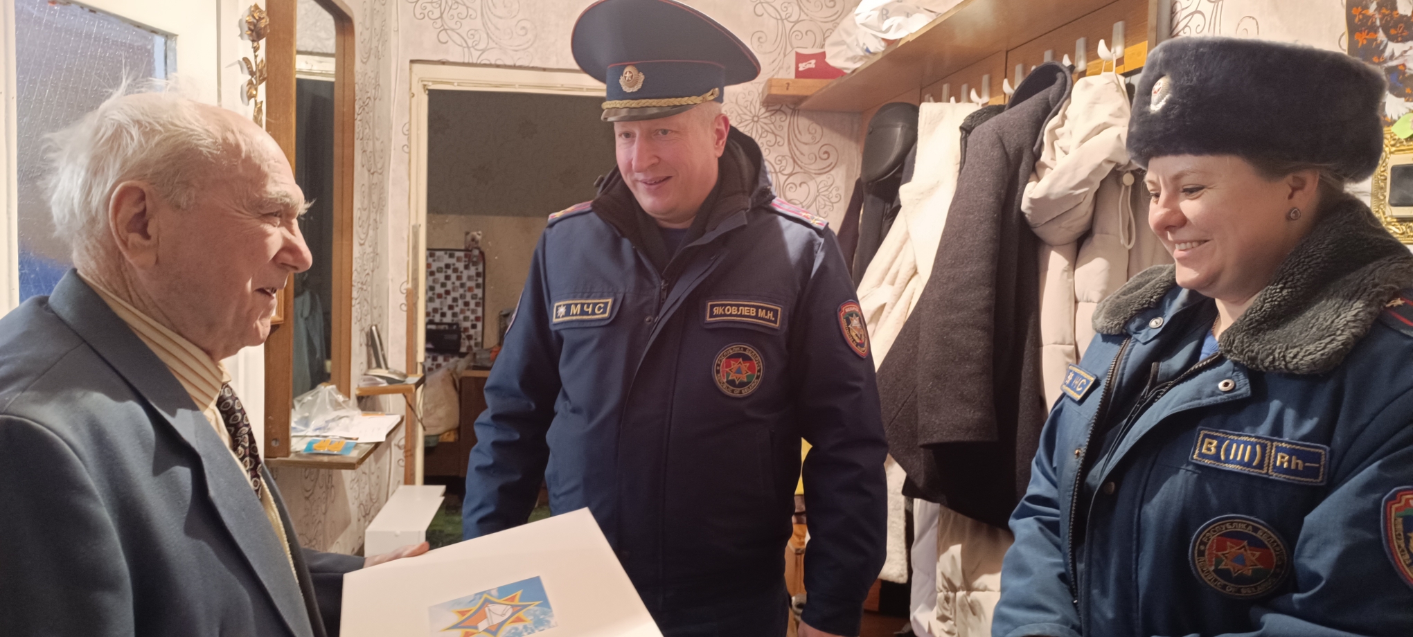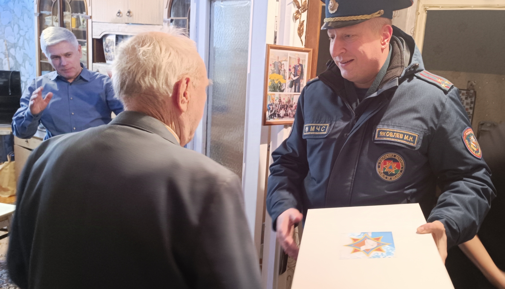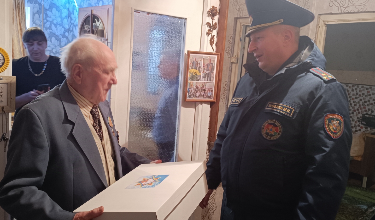 Начальник Центрального РОЧС Максим Яковлев, а также представители ОАО «Станкостроительный Завод им. С.М. Кирова» совместно с СЗАО «Безопасные дороги Беларуси» в рамках республиканской акции «От всей души» поздравили ветерана Великой Отечественной войны Лагуновского Ивана Ивановича.