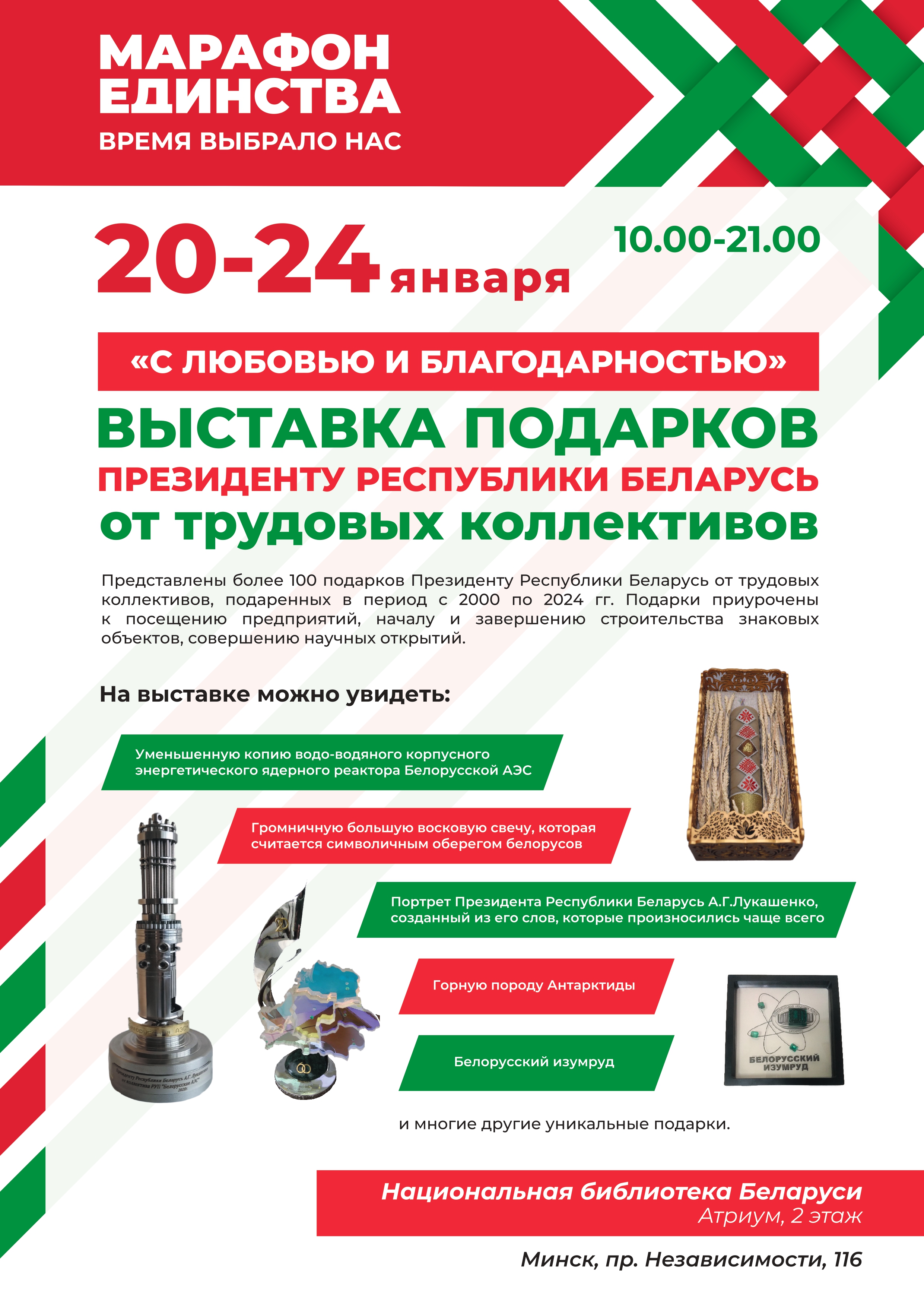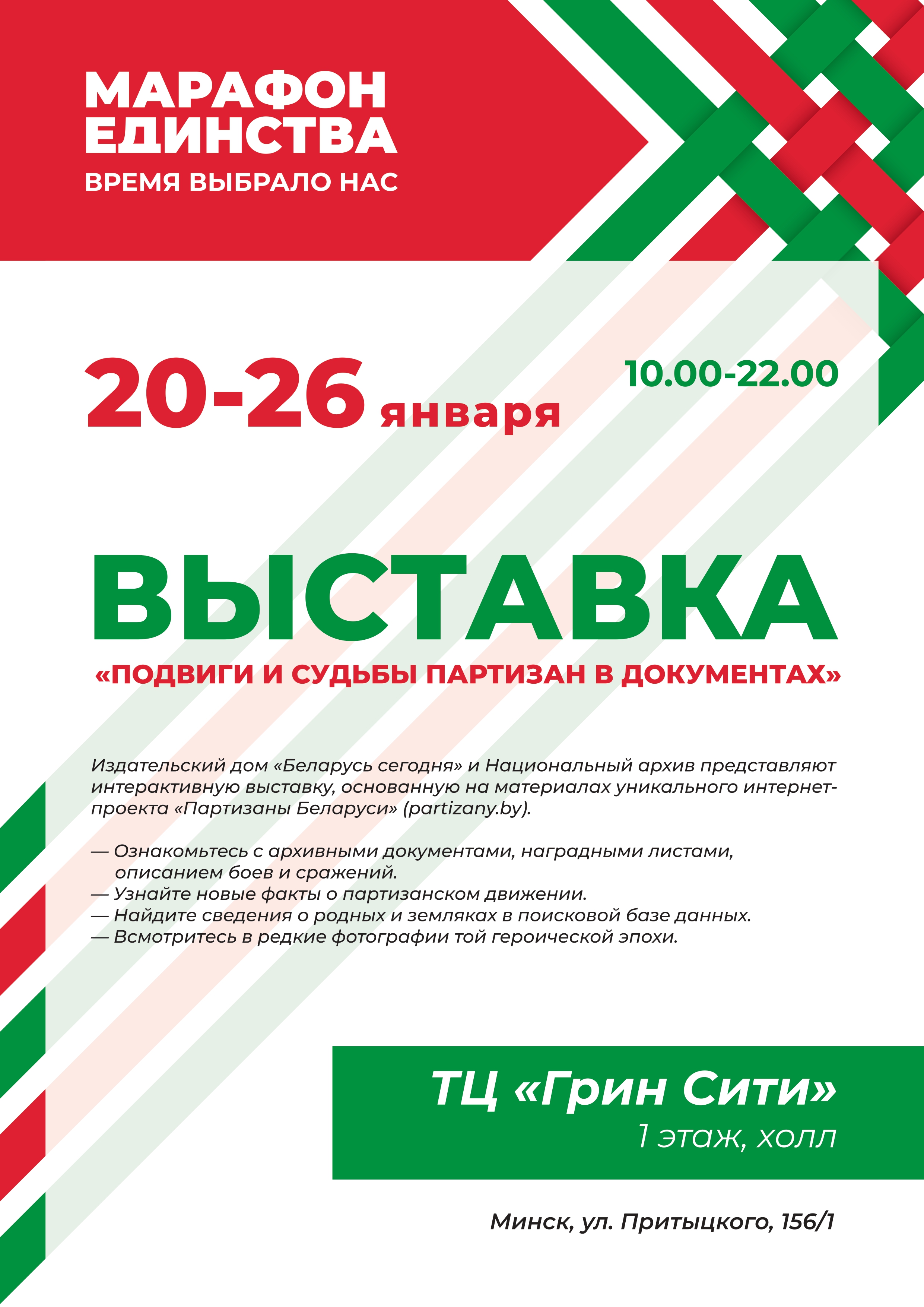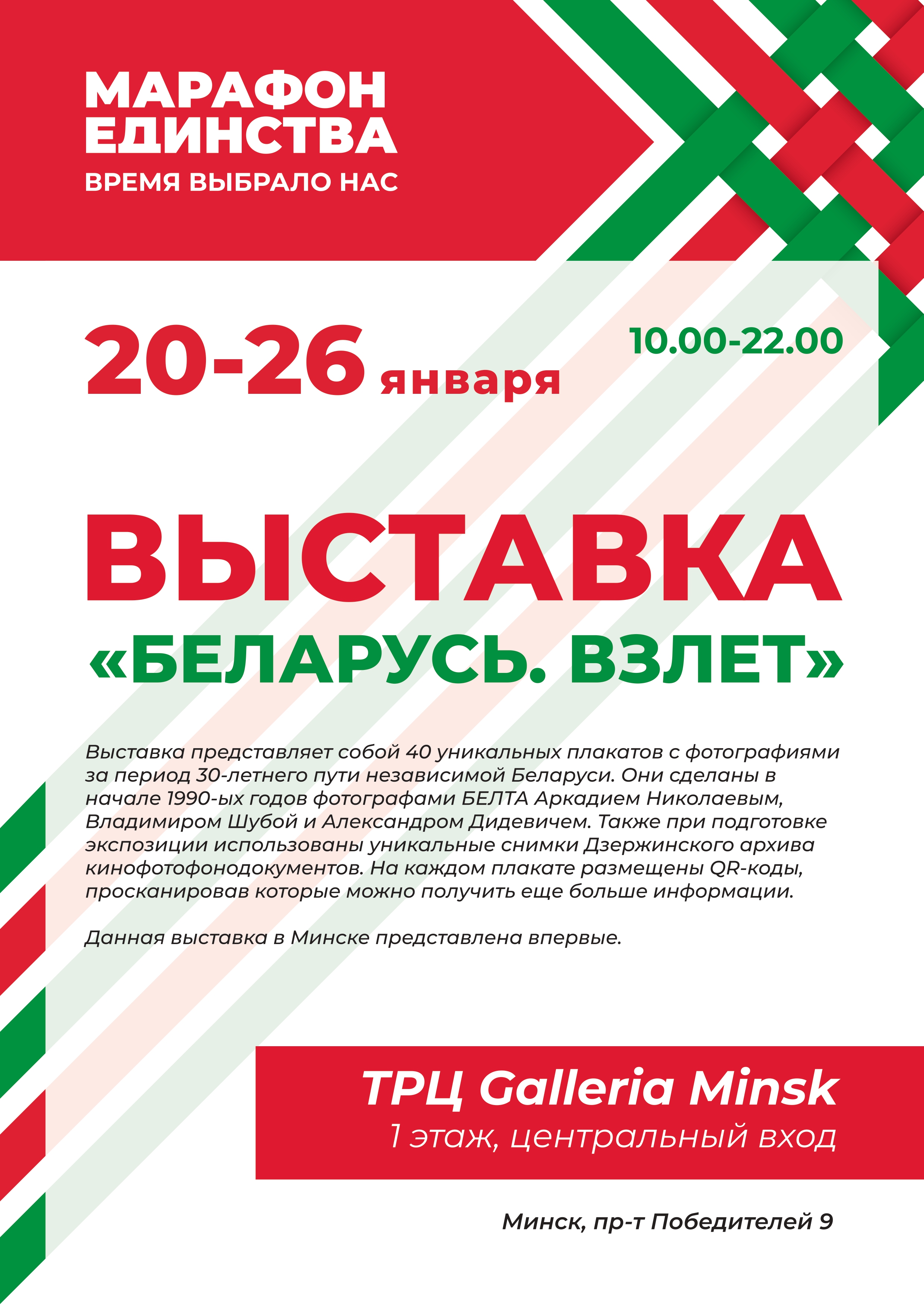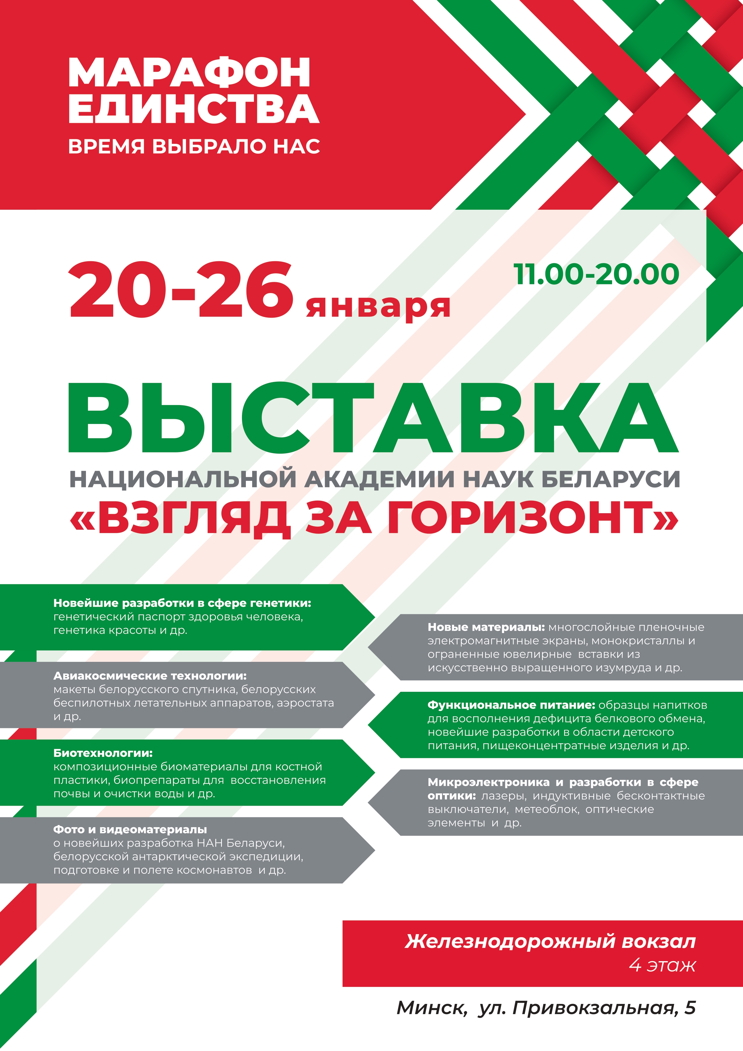 Республиканскую общественно-культурную акцию «Марафон единства», старт которой дал Президент 17 сентября 2024 года, принимает столица. Всю неделю в разных районах города будут организованы выставки, флешмобы, лекции, концерт и другие активности. Что можно посетить 20 января, читайте в материале корреспондента агентства «Минск-Новости».