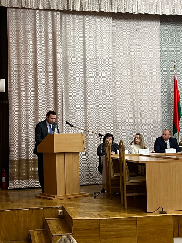 Одним из докладчиков выступил начальник отдела городского хозяйства Лупсяков Игорь Александрович с вопросами «О проведении мероприятий Года благоустройства в 2025 году на территории Центрального района г.Минска» и «Об итогах выполнения Плана мероприятий по благоустройству и содержанию территории Центрального района г.Минска в 2024 и утверждении Плана мероприятий по благоустройству и содержанию территорий Центрального района г.Минска на 2025 год»