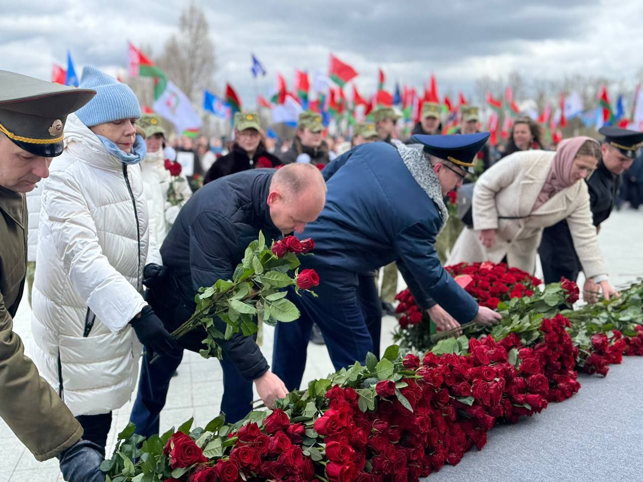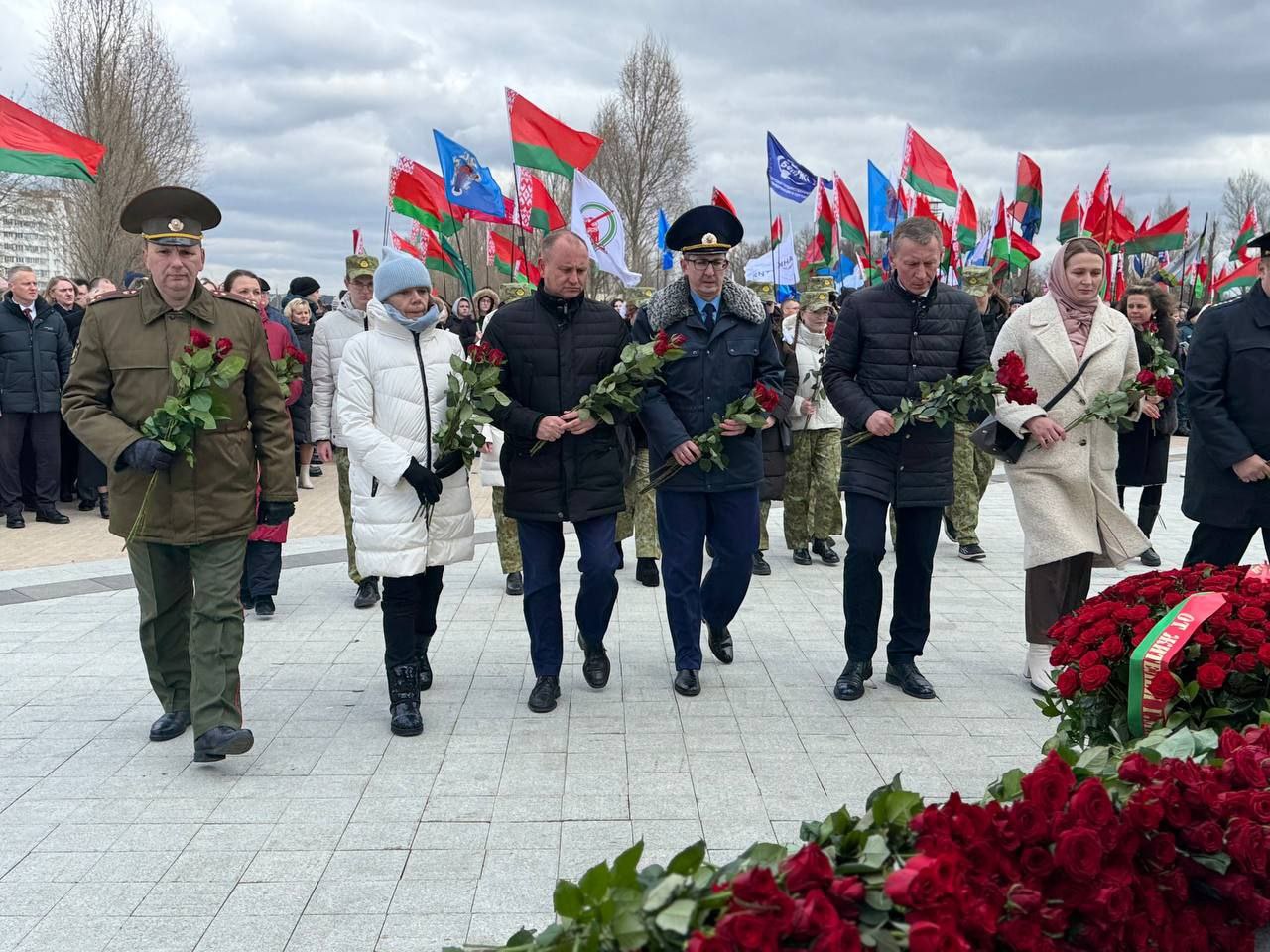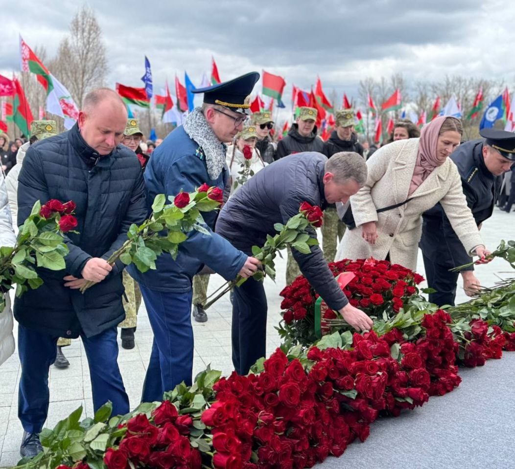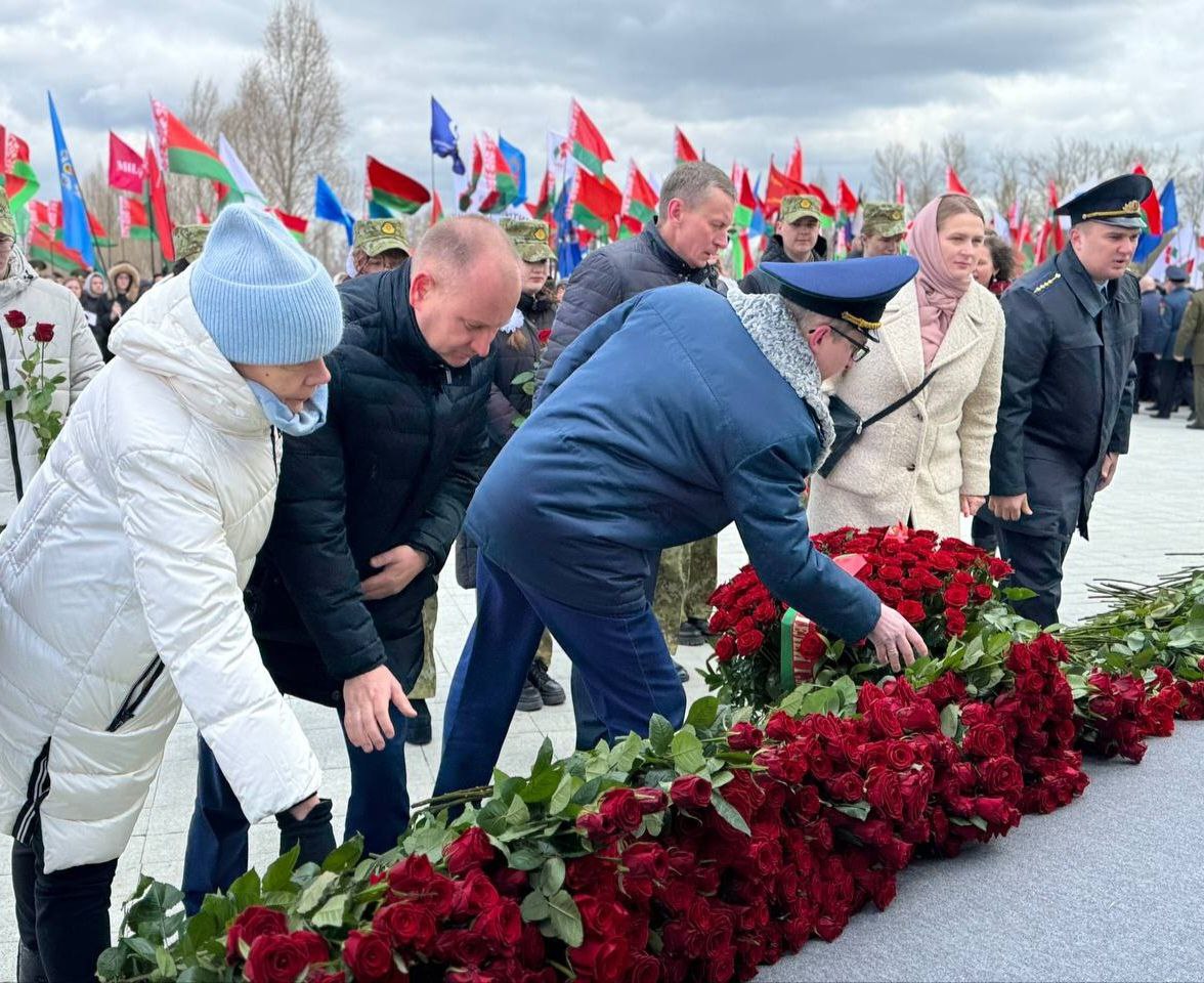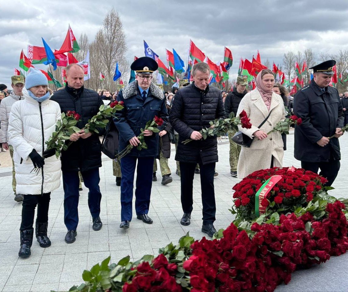 К «Вратам памяти» возложила цветы руководство администрации Центрального района г.Минска, представители трудовых коллективов, расположенных на территории Центрального района г.Минска, а также руководители районных организаций общественных объединений.