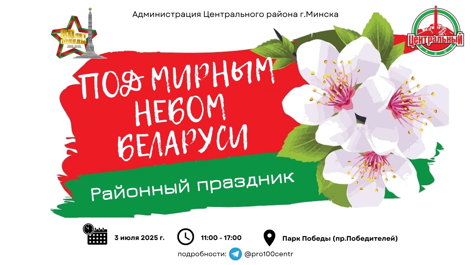 Культурно-развлекательная программа «Под мирным небом Беларуси», посвященная Дню Республики, пройдет в парке Победы 3 июля, сообщает корреспондент агентства «Минск-Новости».