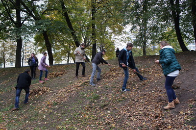 Не остались безразличными и общественные организации района. Члены ОО «БРСМ» и ОО «БРПО» убрали листву в сквере им. М. Казея, Киевском сквере, сквере Т.Шевченко и у Памятника жертвам Гитлеровского геноцида.