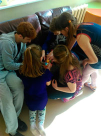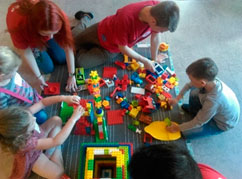 Вторая точка активности - «Психосоциальная поддержка с использованием конструктора ЛЕГО» располагалась на пятом этаже. Со всеми желающими проводились упражнения с помощью конструктора ЛЕГО. С детьми проводились игры на знакомство и на развитие памяти, родители с удовольствием принимали участие.