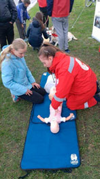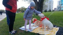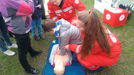 9 мая 2017 г. в парке Победы Центральная районная организация г. Минска Белорусского Общества Красного Креста развернула информационно - интерактивную площадку, включающую в себя локации с показом мастер-класса по первой помощи, с собаками-терапевтами из волонтерской инициативы «Доготерапия» и «Психосоциальная поддержка с использованием конструктора ЛЕГО» из волонтерской инициативы «Территория радости». Жители района были проинформированы о деятельности районной организации, активно принимало участие в мастер-классе по первой помощи, интересовались методикой работы с конструктором ЛЕГО в рамках психосоциальной поддержки. И, конечно же, в центре внимания были собаки – доготерапевты.