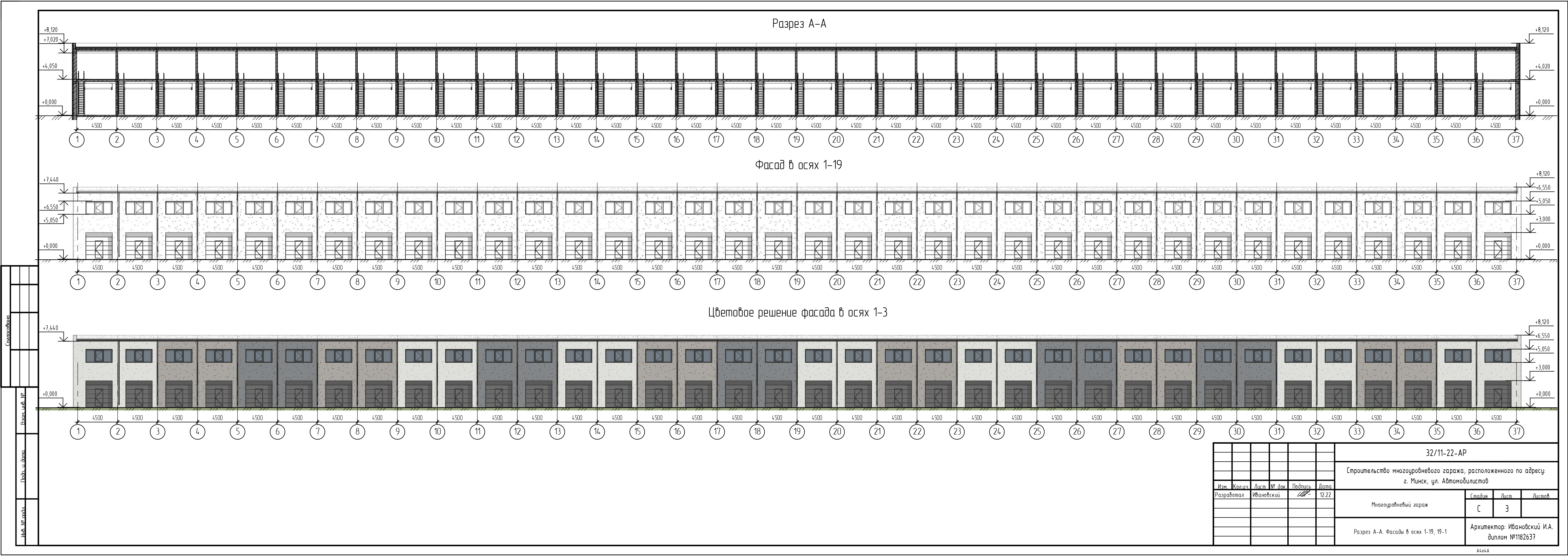 Общие данные по объекту: "Строительство многоуровневого гаража, расположенного по адресу: г. Минск, ул. Автомобилистов", состоящего из 36 блок-секций с габаритными размерами в осях 7,2х4,5 метра.