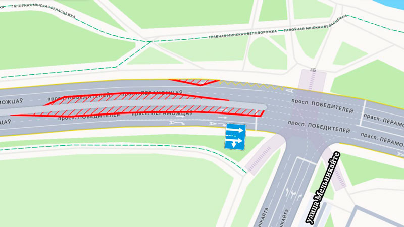 В связи со строительством метро с 22:00 13 февраля вносятся корректировки в организацию дорожного движения по проспекту Победителей на участке от улицы Мельникайте до проспекта Машерова.