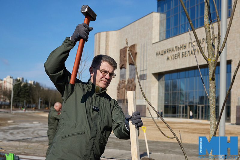 Кроме того, А. Лукашенко вместе с другими участниками субботника высадил деревья на прилегающей к музею территории. Участие также приняло руководство Мингорисполкома во главе с председателем Владимиром Кухаревым.