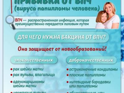 С 2025 года в Национальный календарь профилактических прививок внесена вакцинация против инфекции, вызванной вирусом папилломы человека Подробнее
