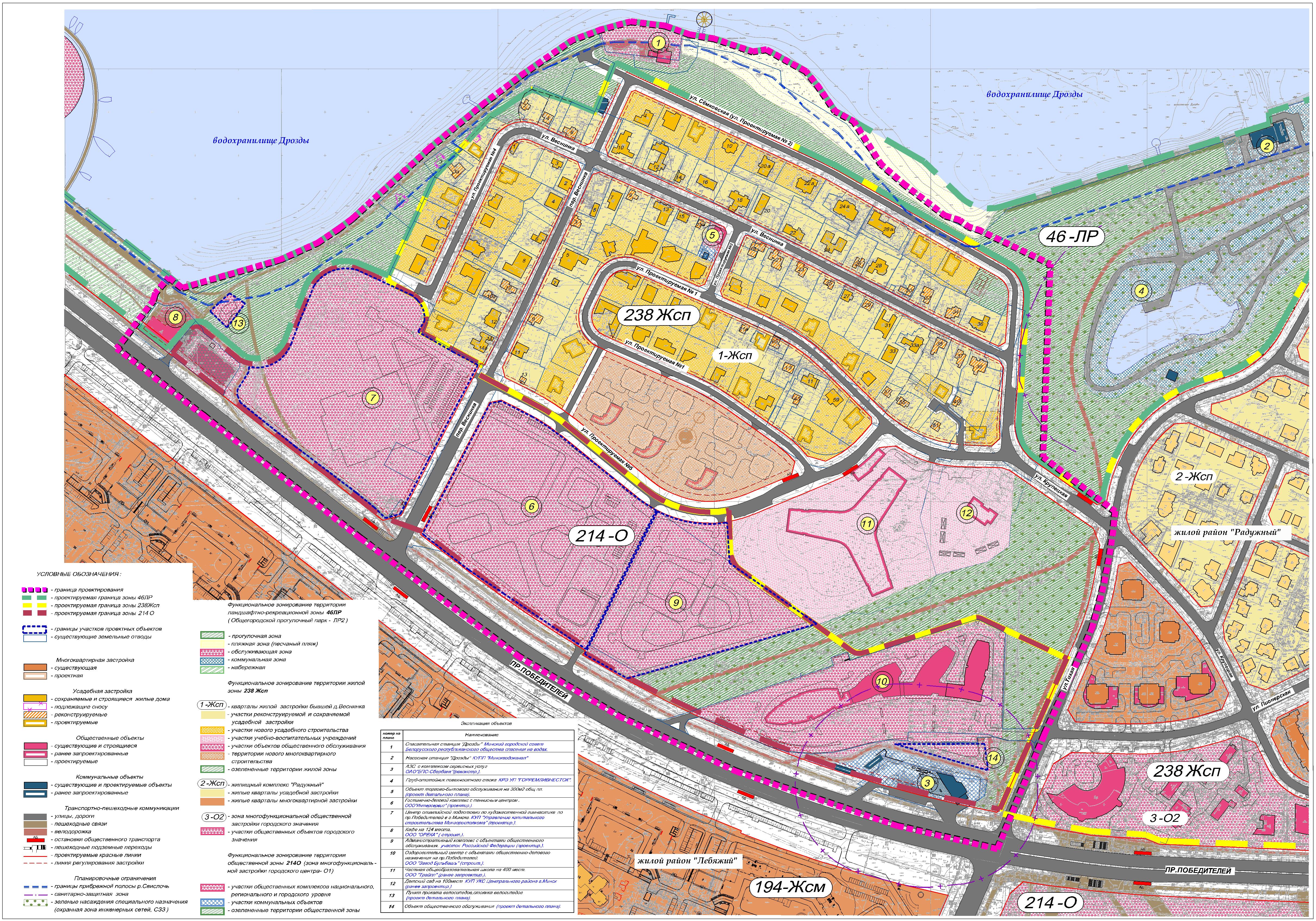 - разработка градостроительного документа для регулирования инвестиционных процессов на проектируемой территории в части установления градостроительных требований к ее использованию и застройке в соответствии с регламентами генерального плана г.Минска.
