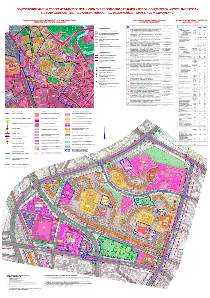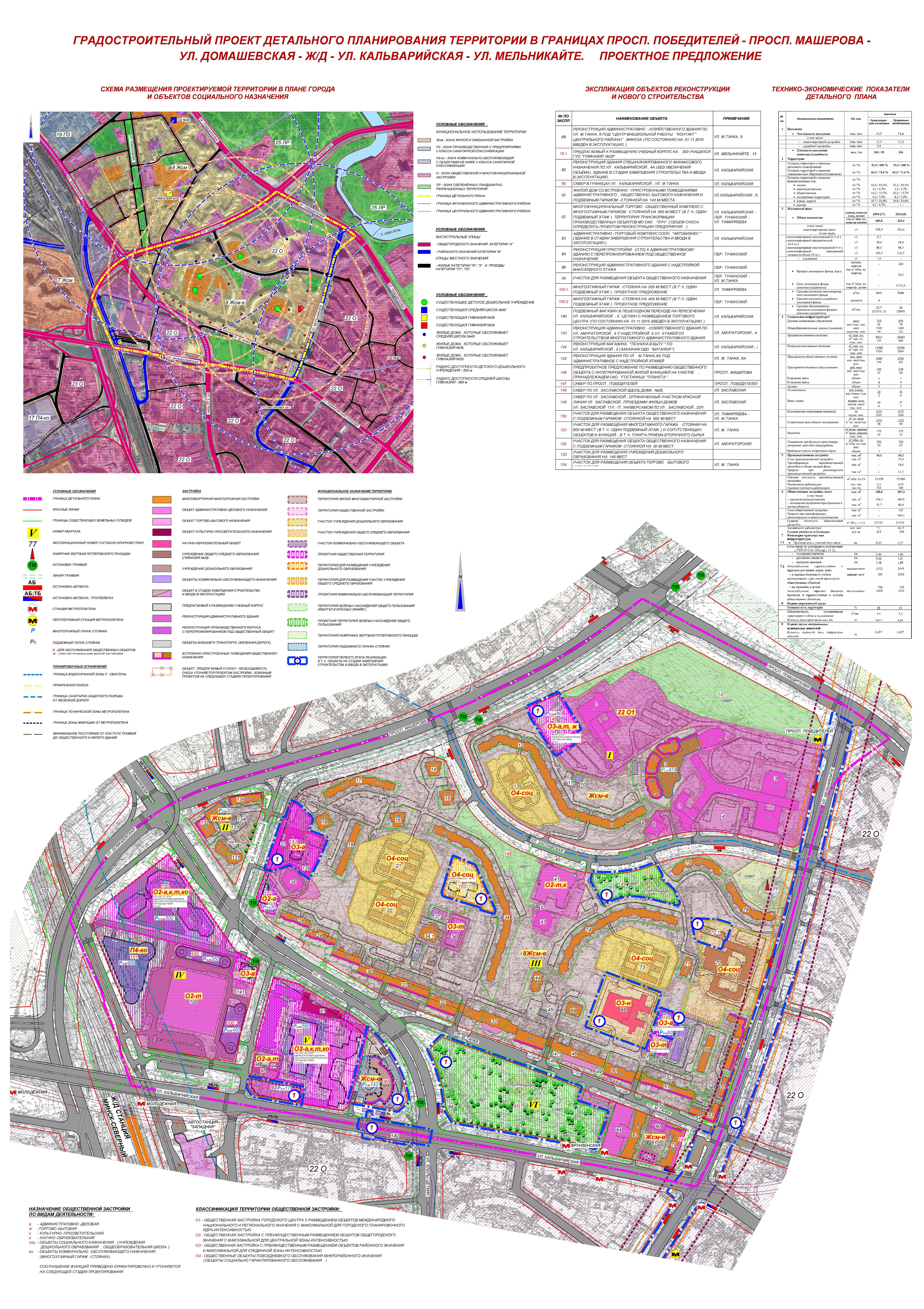Данный проект детального планирования захватывает территории двух административных районов города Минска Центрального и Фрунзенского и ограничен просп. Победителей, просп. Машерова, ул. Домашевской, железной дорогой, ул. Кальварийской, ул. Мельникайте.