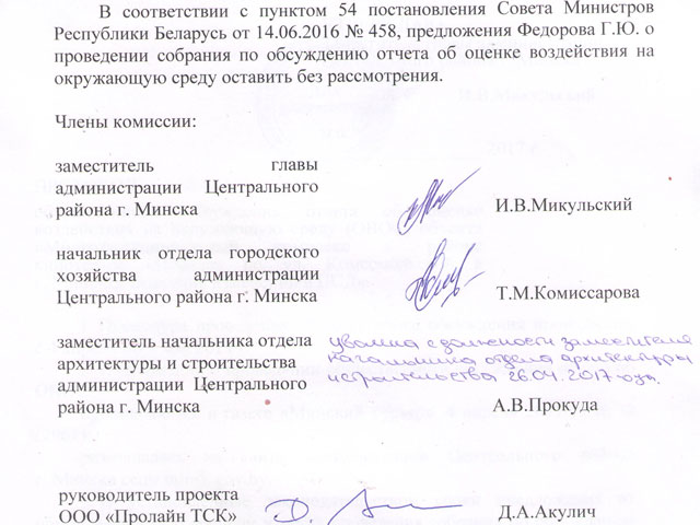Объявление. Общественное обсуждение экологического доклада по стратегической экологической оценке проекта «Корректировка градостроительного плана детального планирования территории в границах просп.Победителей-МКАД-ул.Тимирязева-ул. 4-ое Кольцо"