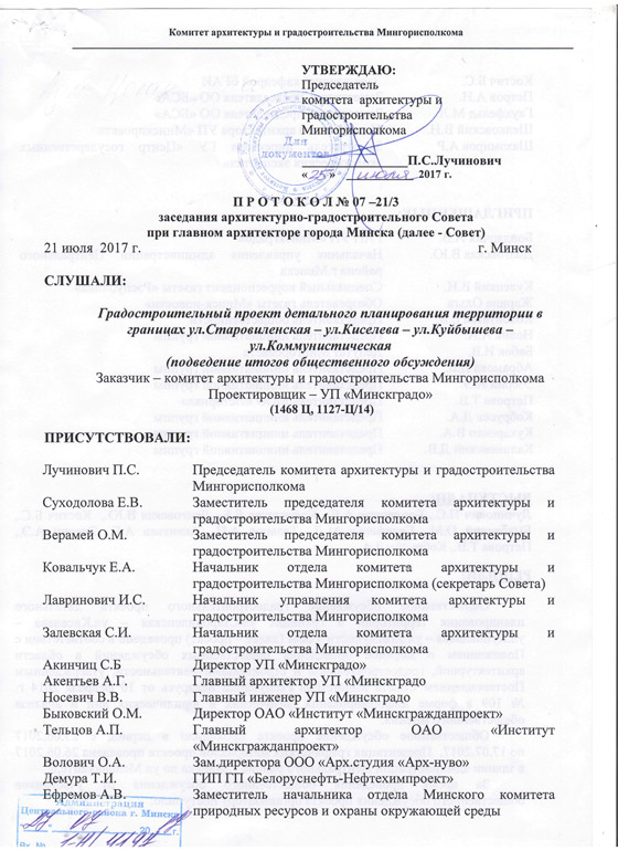 Градостроительный проект детального планирования территории в границах ул.Старовиленская - ул.Киселева - ул.Куйбышева - ул.Коммунистическая (подведение итогов общественного обсуждения)